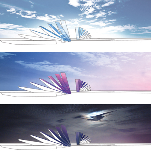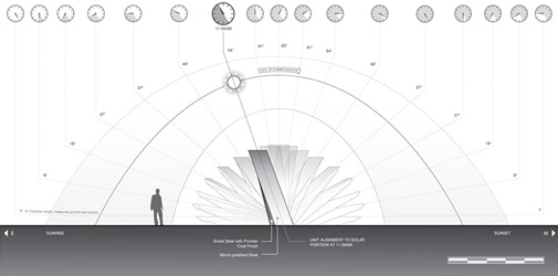 sweeping array which follows the path of the sun at its summer